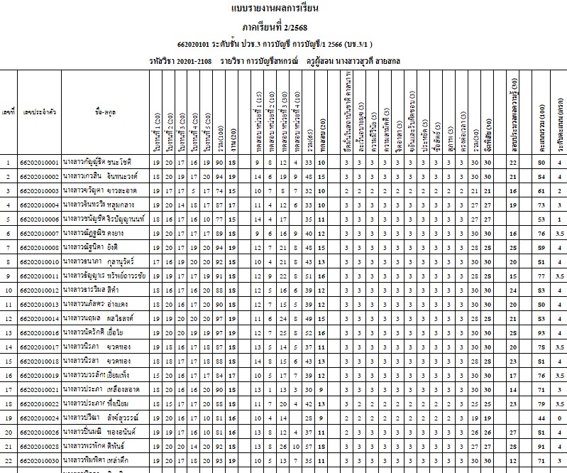 คะแนนเก็บวิชา การบัญชีสหกรณ์ บช.3/1 (สอนสัปดาห์ที่ 1-2)