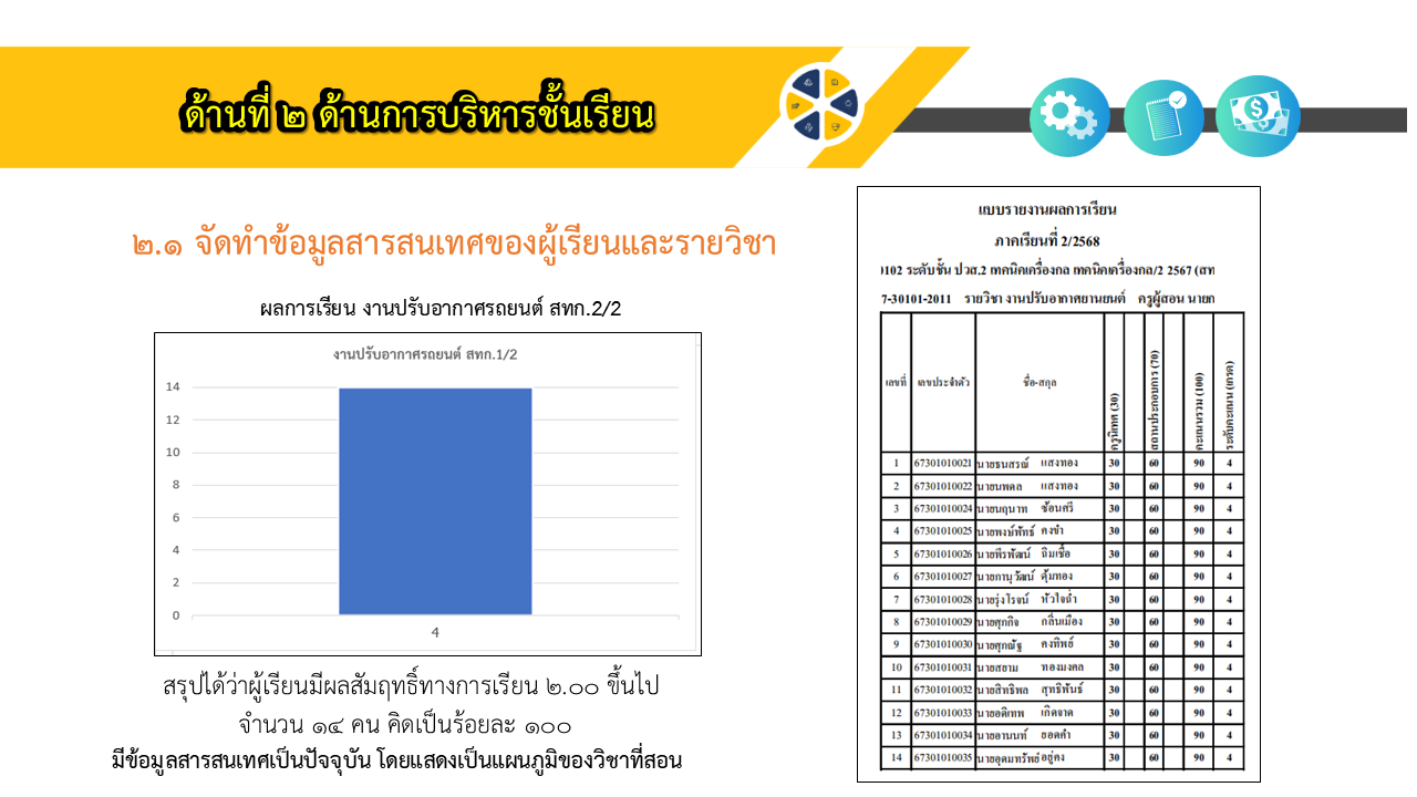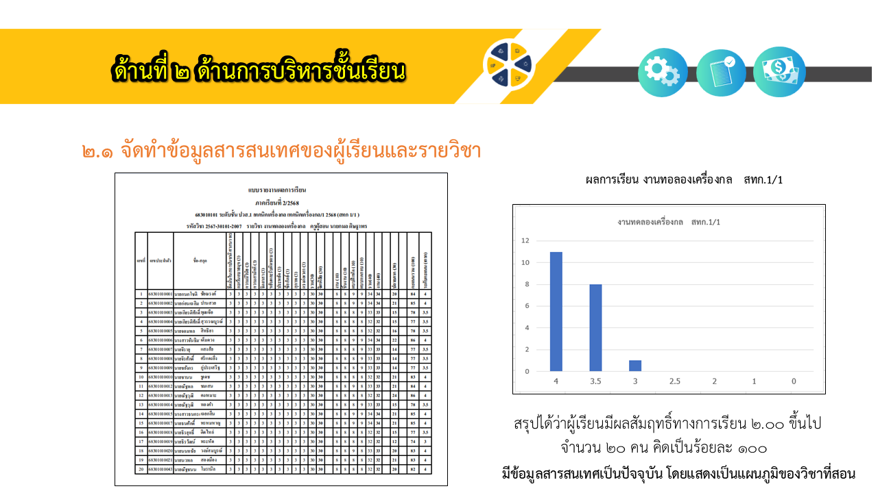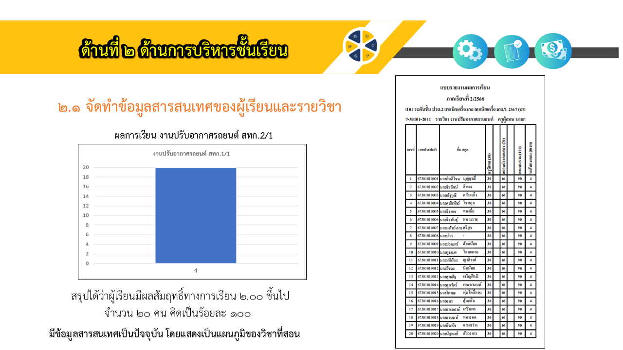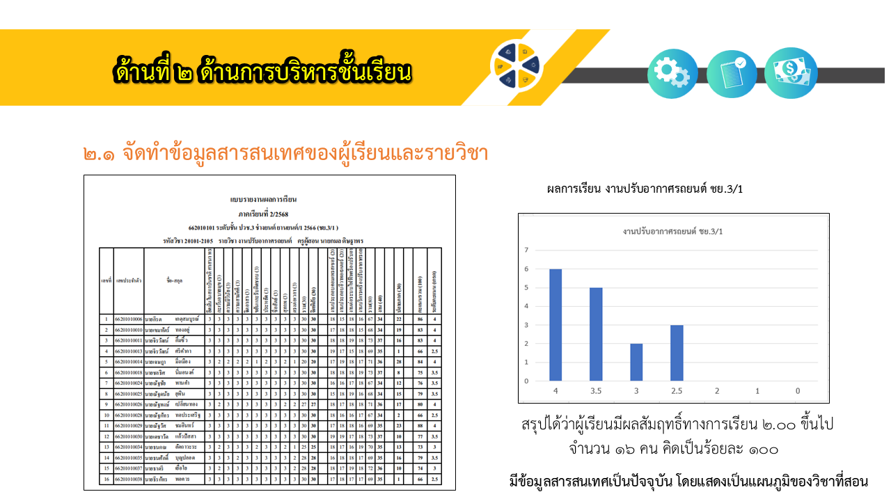 2.1 จัดทำข้อมูลสารสนเทศของผู้เรียนและรายวิชา