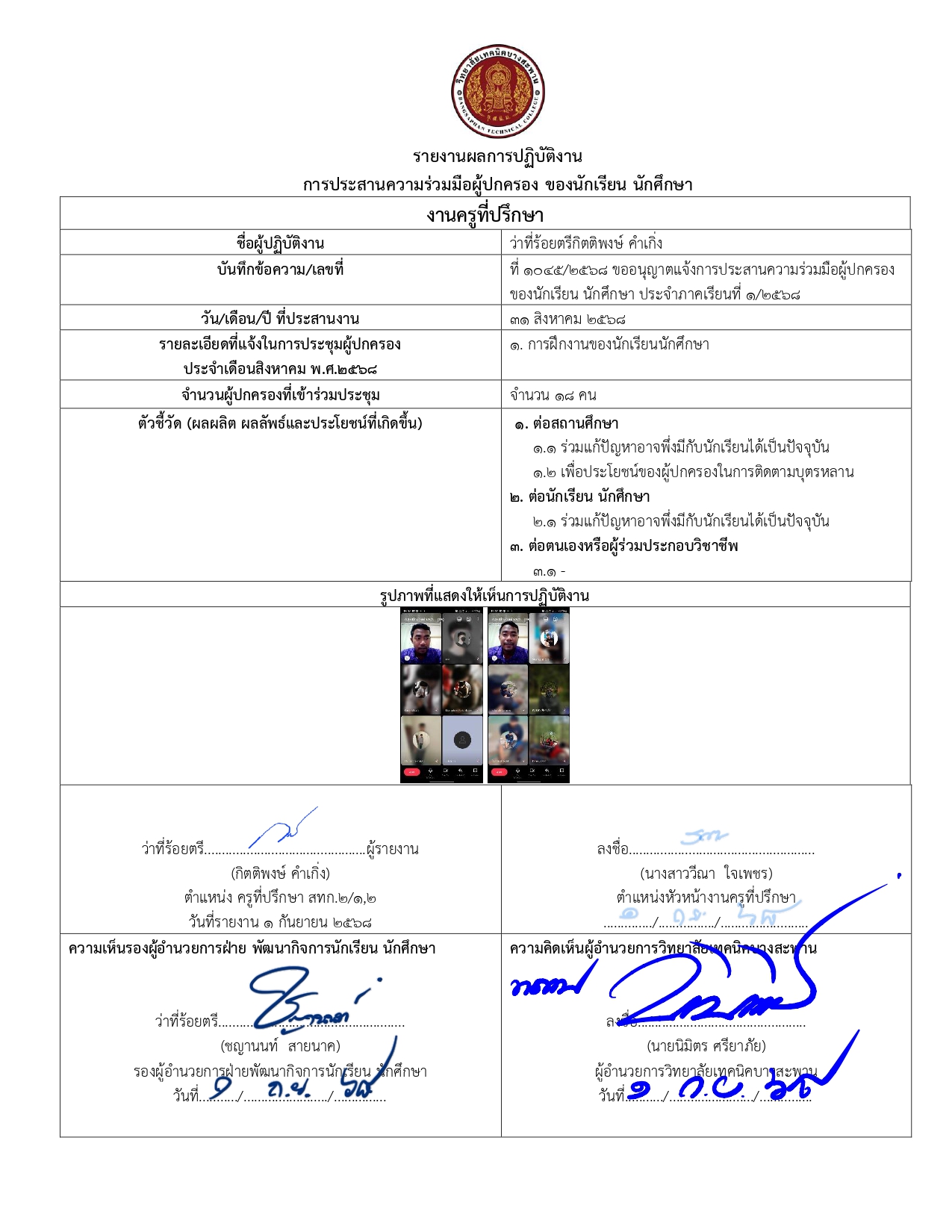 2.3 การประสานความร่วมมือกับผู้ปกครอง ภาคีเครือข่าย และหรือสถานประกอบการ