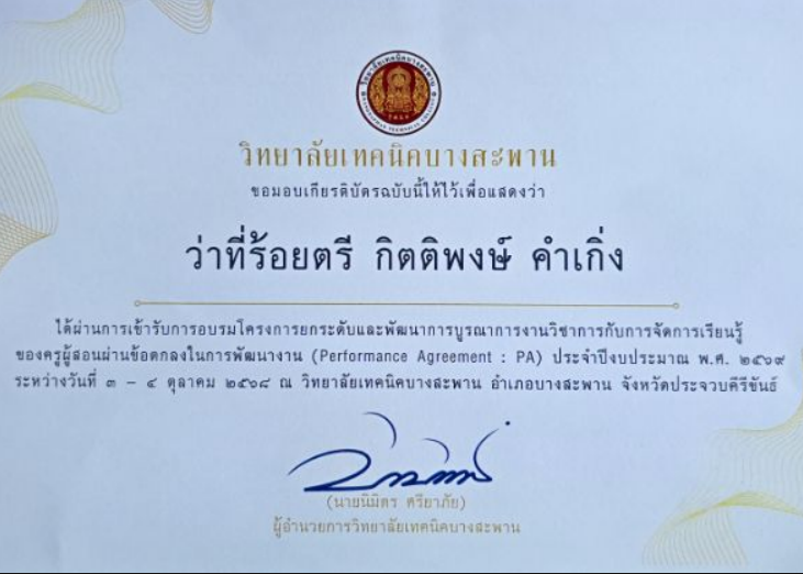 - โครงการยกระดับและพัฒนาการบูรณาการงานวิชาการกับการจัดการเรียนรู้ของครูผู้สอน ผ่านบันทึกข้อตกลงการพัฒนางาน (PA) ประจำปีงบประมาณ 2569