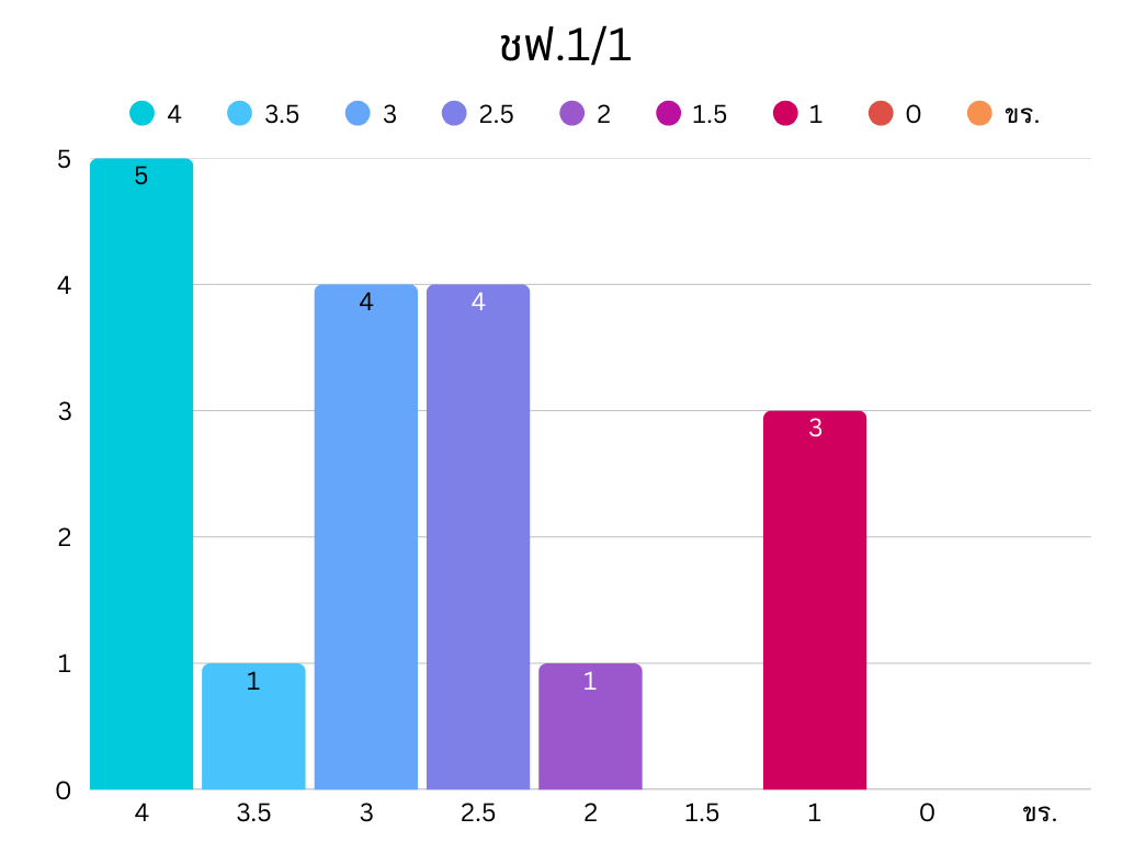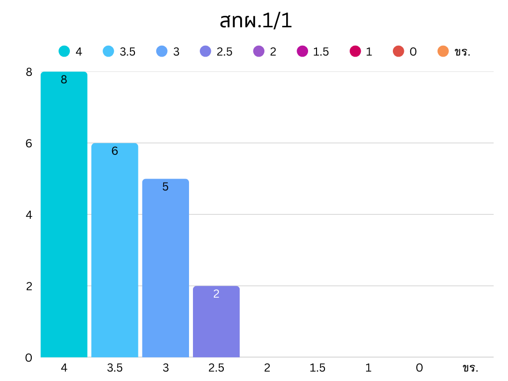 • ผลการเรียน 1 จำนวน 0 คน คิดเป็น ร้อยละ 0.00