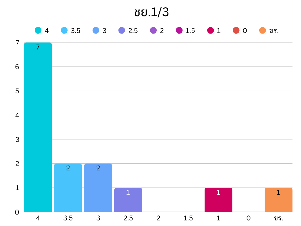 • ผลการเรียน 1 จำนวน 3 คน คิดเป็น ร้อยละ 33.33