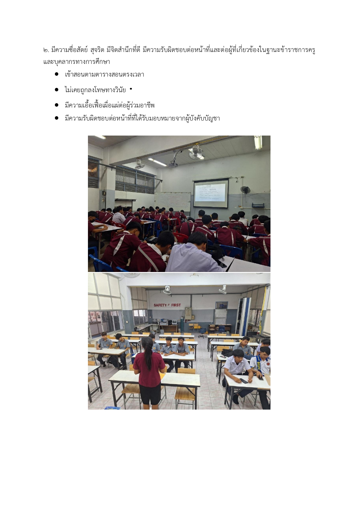 2. มีความซื่อสัตย์ สุจริต มีจิตสำนึกที่ดี มีความรับผิดชอบต่อหน้าที่และต่อผู้ที่เกี่ยวข้องในฐานะข้าราชการครูและบุคลากรทางการศึกษา