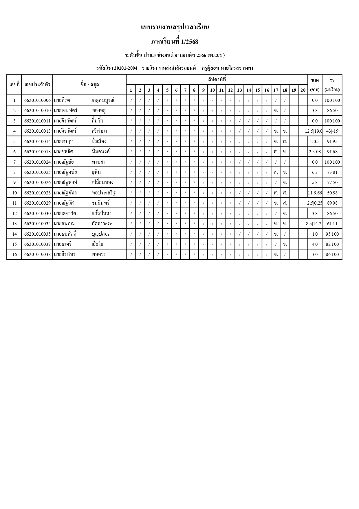 วิชางานซ่อมเครื่องยนต์เบื้องต้น