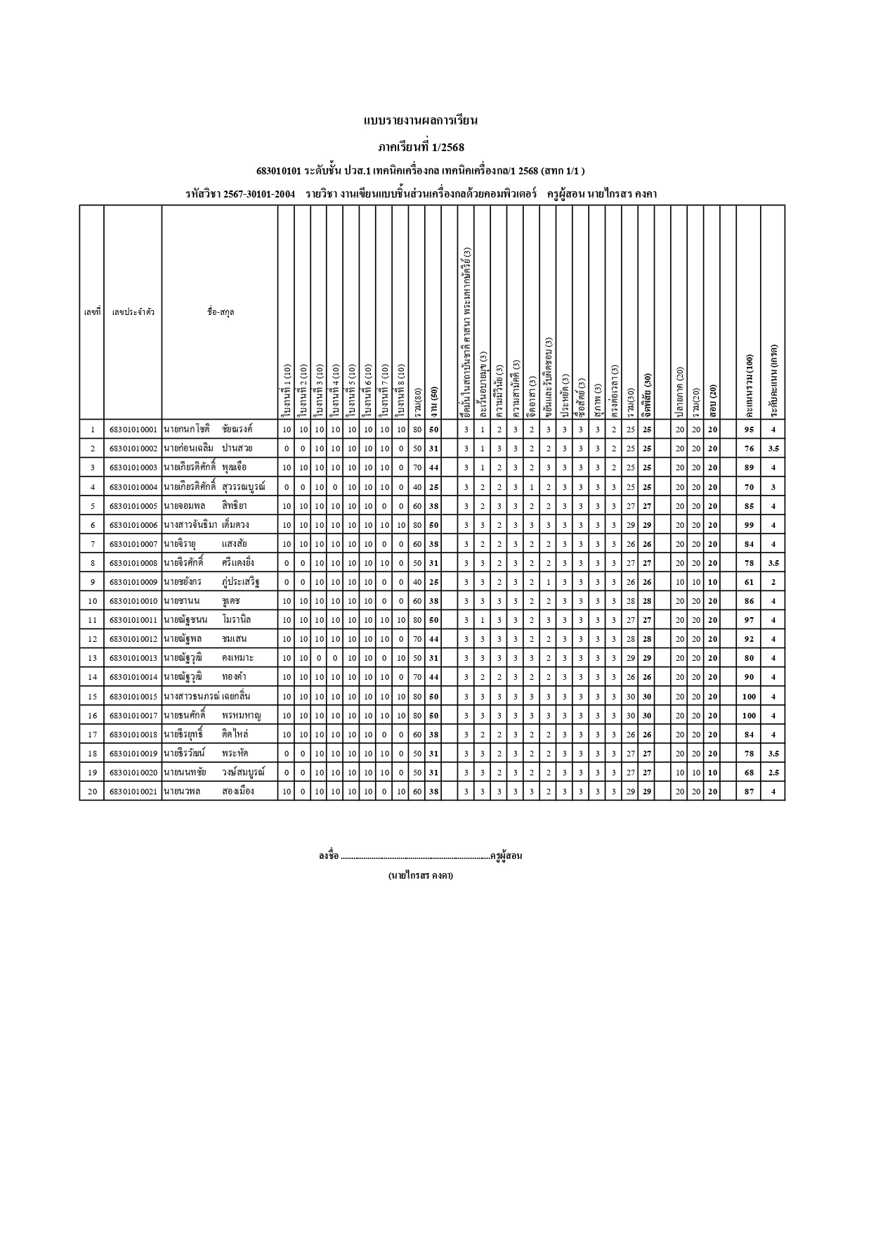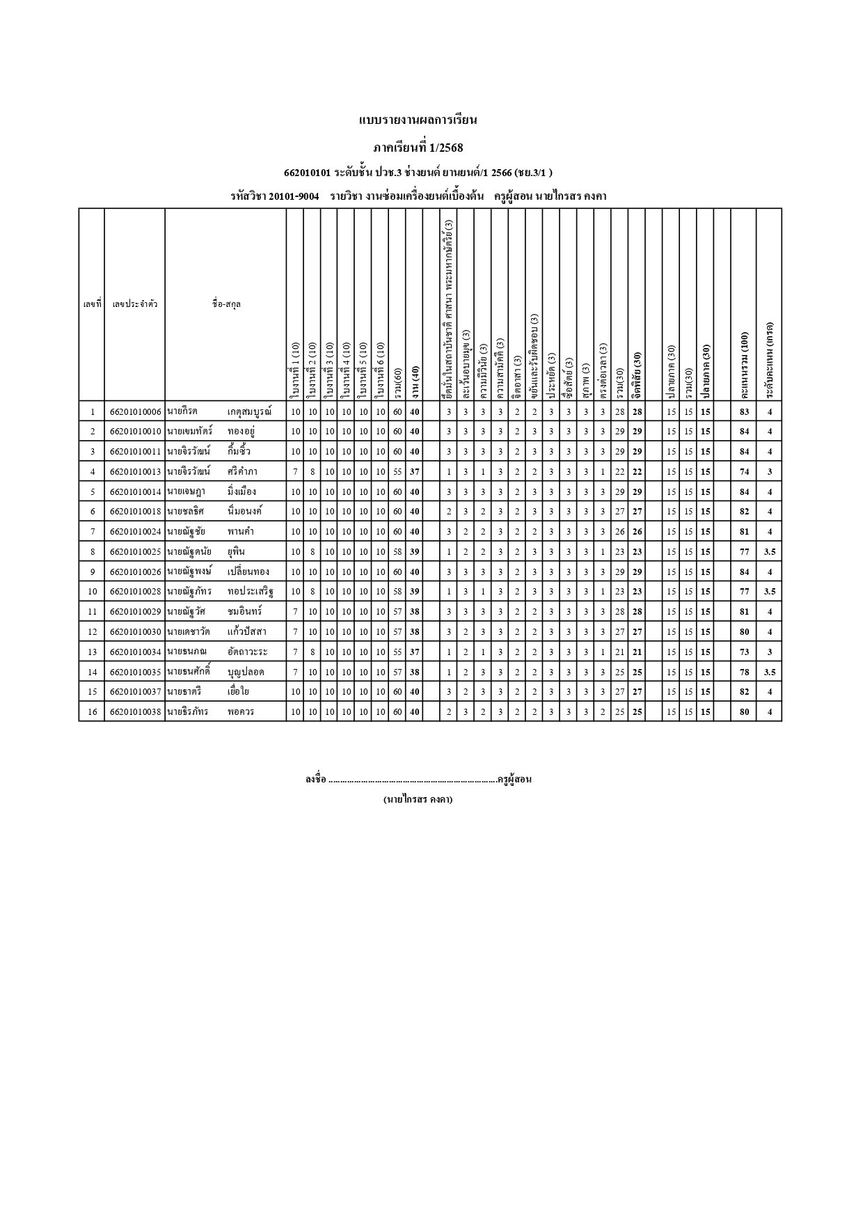 วิชางานซ่อมเครื่องยนต์เบื้องต้น