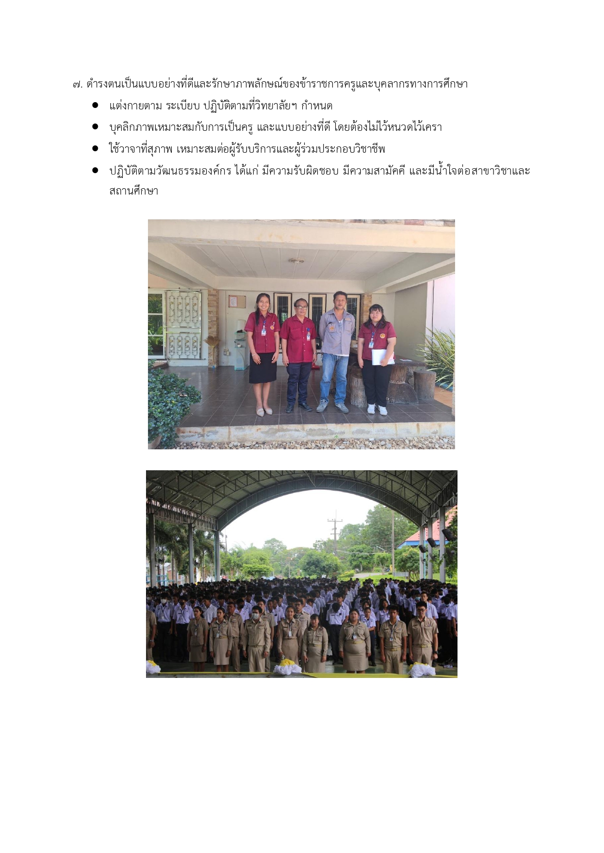 7. ดำรงตนเป็นแบบอย่างที่ดีและรักษาภาพลักษณ์ของข้าราชการครูและบุคลากรทางการศึกษา