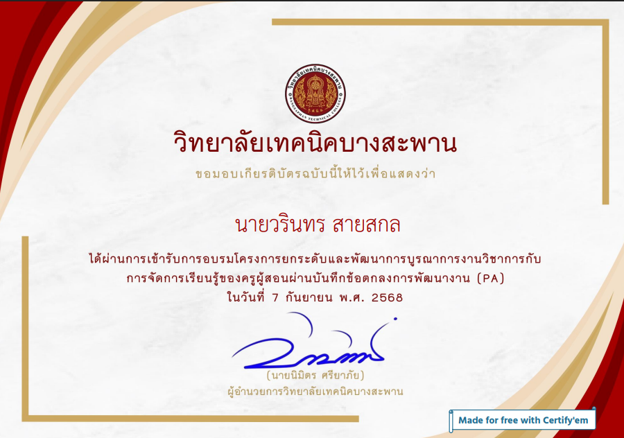 ครูที่ปรึกษา ผลงานด้านนวัตกรรมและเทคโนโลยีเพื่อส่งเสริมและพัฒนาวิชาชีพ มินิไบค์ไฟฟ้า รองชนะเลิศอันดับ 2