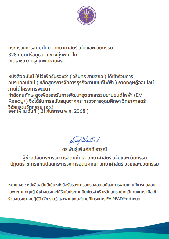 หลักสูตรการจัดการธุรกิจยานยนต์ไฟฟ้า