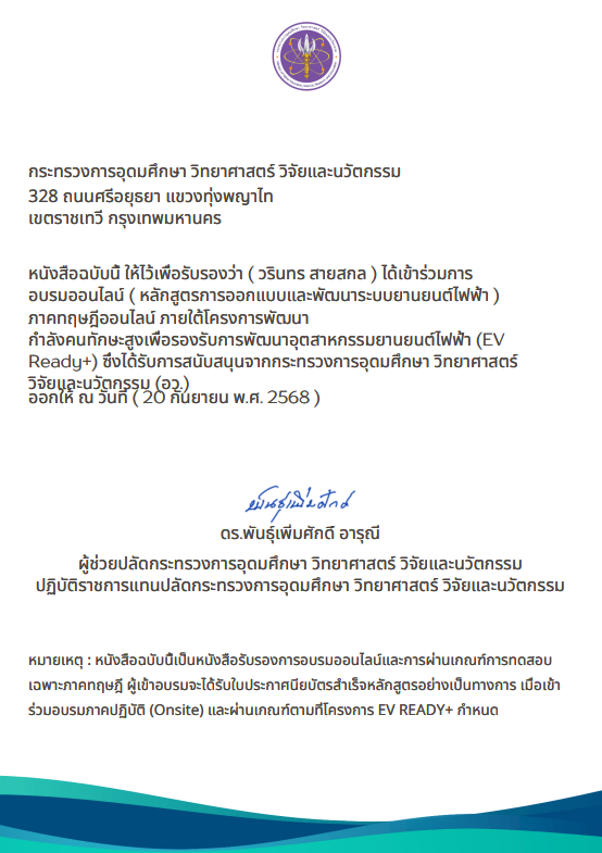 หลักสูตรการออกแบบและพัฒนาระบบยานยนต์ไฟฟ้า