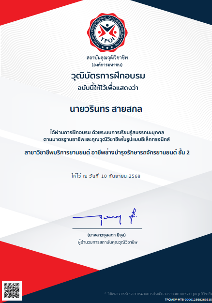 อาชีพช่างบำรุงรักษารถจักรยานยนต์ ชั้น 2