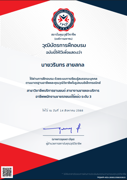 อาชีพพนักงานขายรถยนต์ใช้แล้ว ระดับ 3