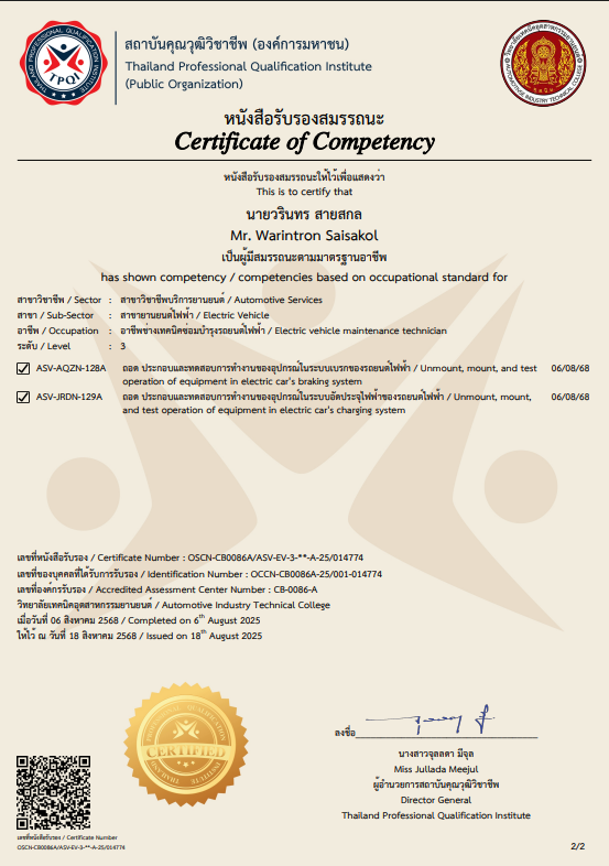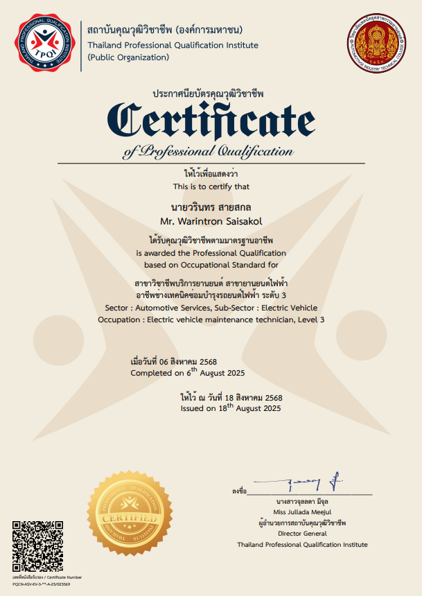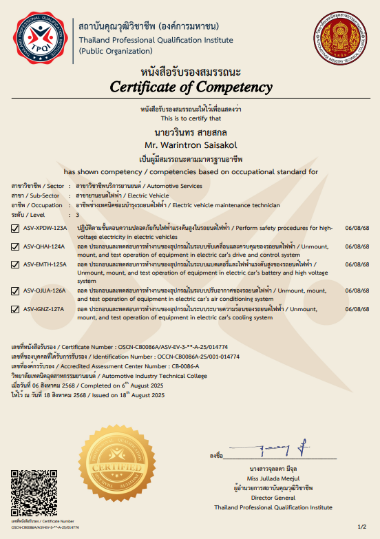 อาชีพช่างเทคนิคบำรุงรักษารถยนต์ไฟฟ้า ระดับ 3