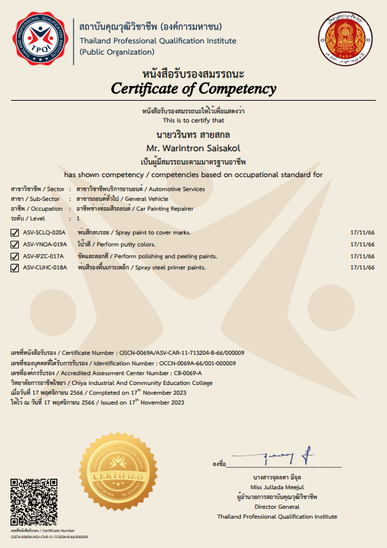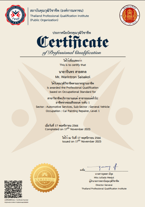 อาชีพช่างซ่อมสีรถยนต์ ระดับ 1