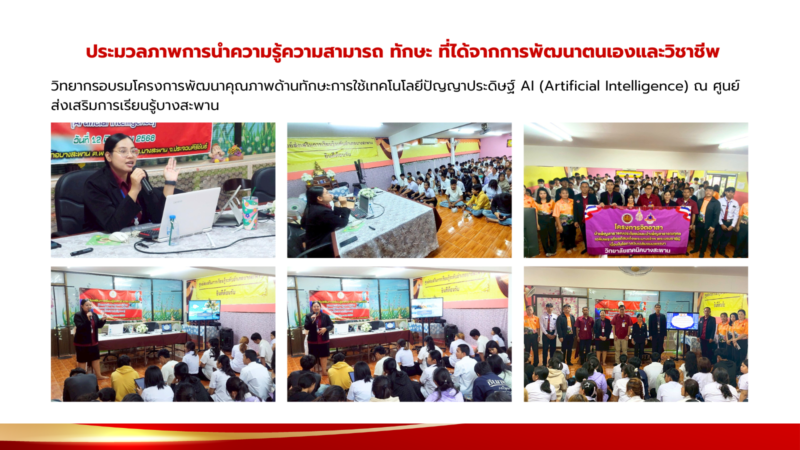 1. วิทยากรอบรมโครงการพัฒนาคุณภาพด้านทักษะการใช้เทคโนโลยีปัญญาประดิษฐ์ AI (Artificial Intelligence) ณ ศูนย์ส่งเสริมการเรียนรู้บางสะพาน