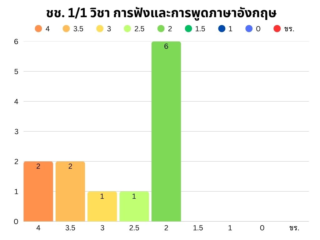 มีจำนวน 6 รายวิชา นักเรียนทั้งหมด คน ผลการเรียน 2.00 น. จำนวน คน